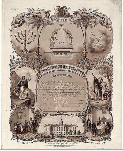 B'nai B'rith was established in 1843 in New York City as a fraternal society dedicated to assisting new Jewish immigrants in adapting to their new community. During its first twenty years of inception, B'nai B'rith founds the first Jewish public library in the United States, assists in numerous crisis including the Great Chicago Fire and the yellow fever epidemic and founds the Jerusalem Lodge, the first public Hebrew speaking organization in what was to become the state of Israel.
